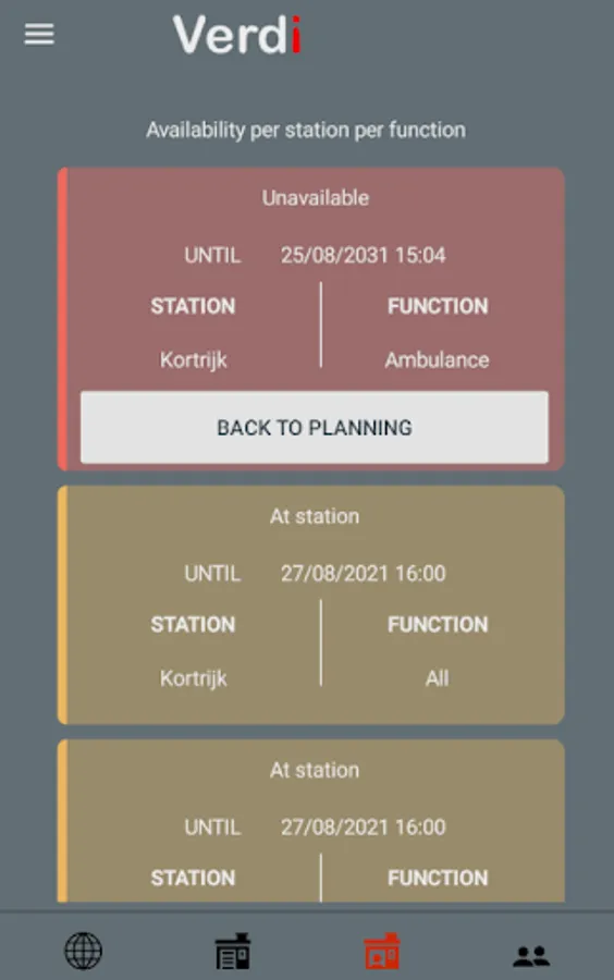 This app allows you to receive alarm messages or information from your dispatching, directly to your mobile device. It also provides a convenient way to change your information in the VERDI system, allowing you to changing your availability or respond to messages.