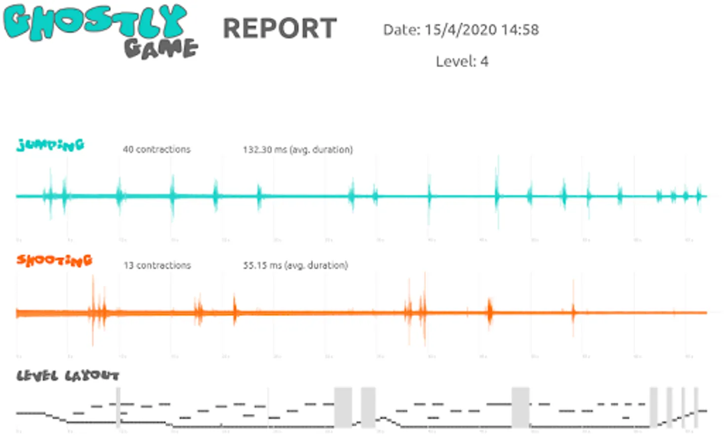 The game records the data from the EMG sensors into a standardized C3D format. Part of the application is also the Ghostly Log that shows history of gameplay (lists the C3D files) and shows reports in simple and understandable way.