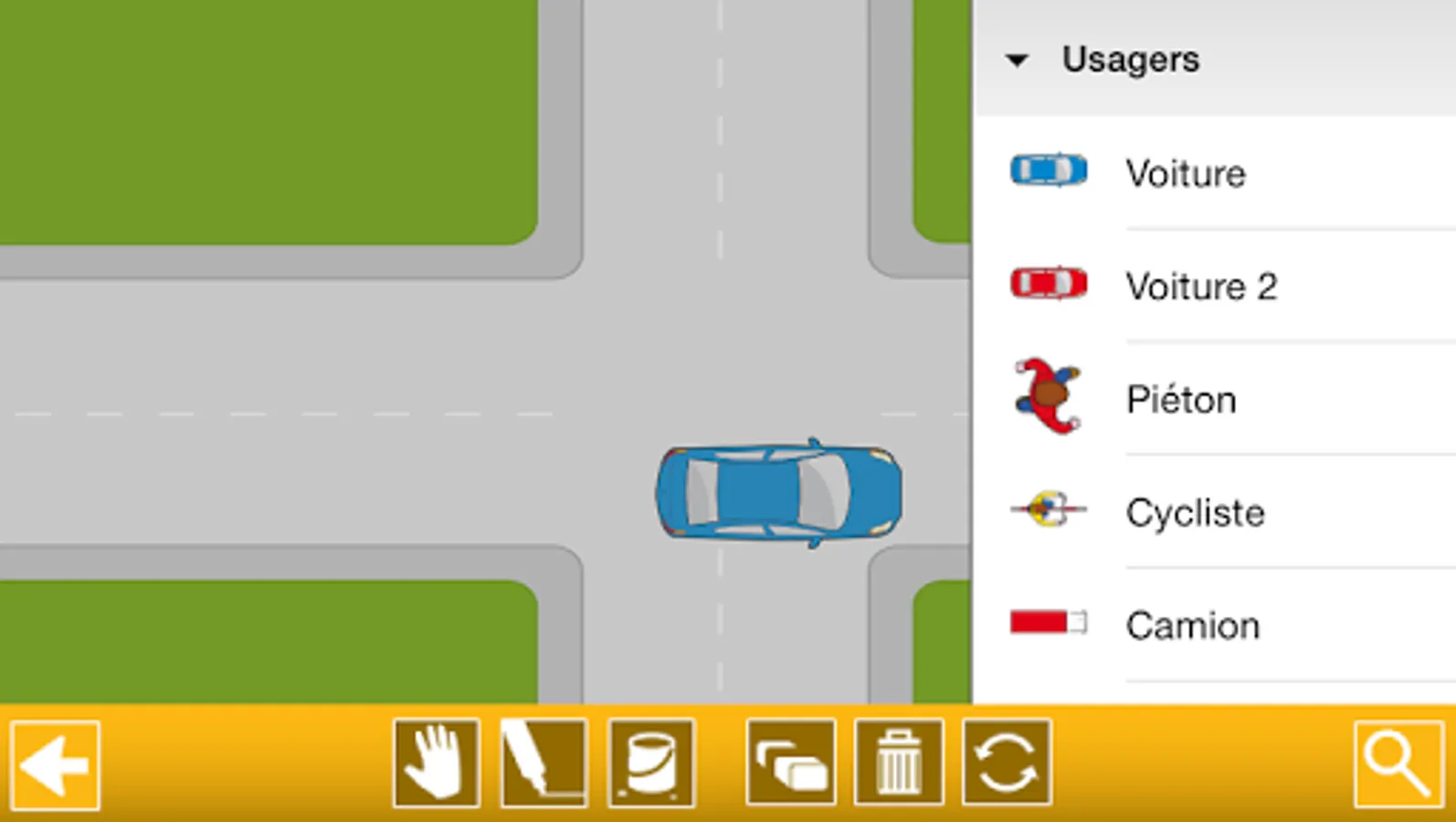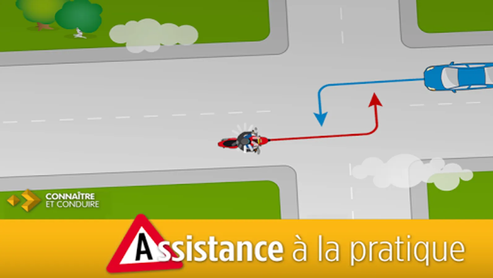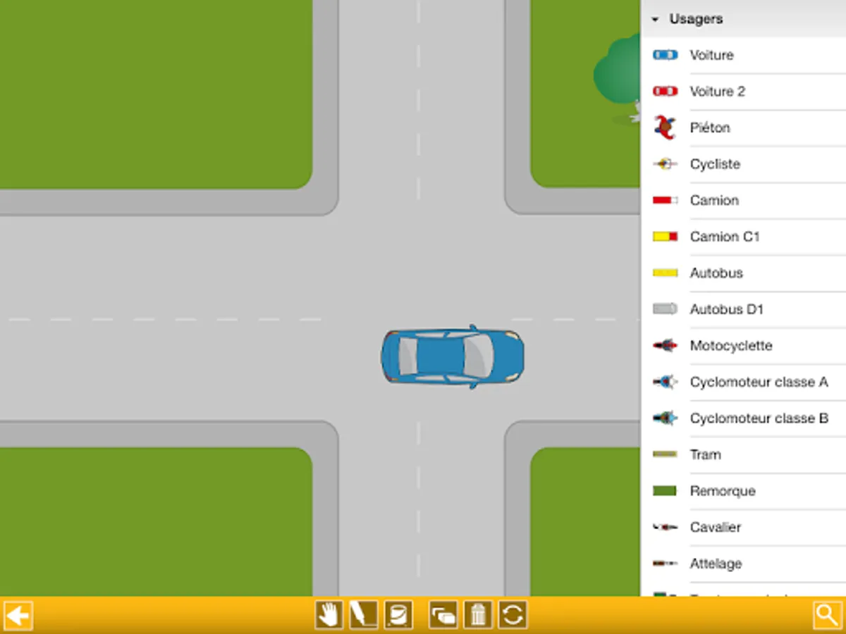 The Assistance to Know and Practice Driving is a digital product to use during practical training. This app allows the instructor of the driving school to quickly draw a traffic situation on a tablet or smart phone. It can be used for all driving license.