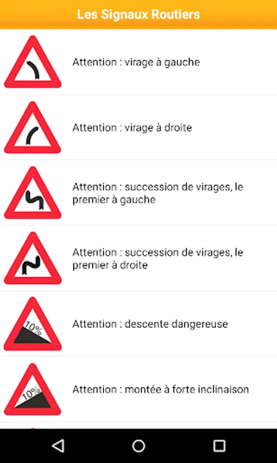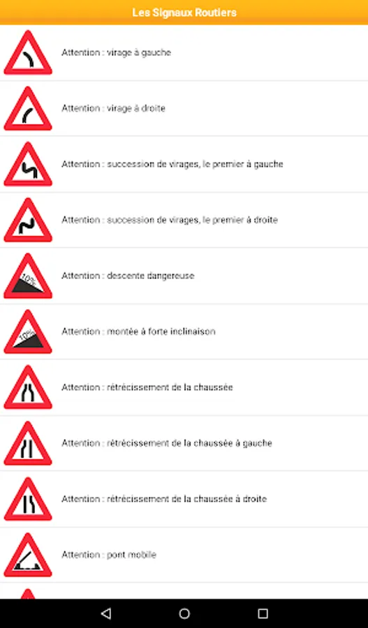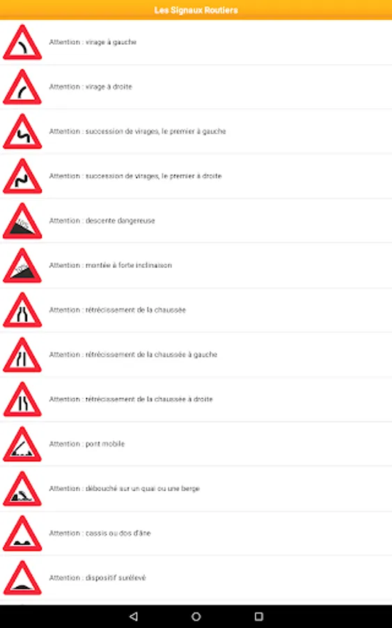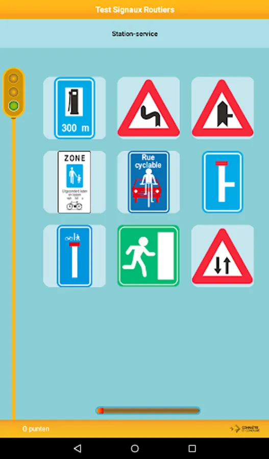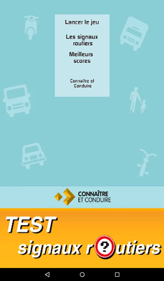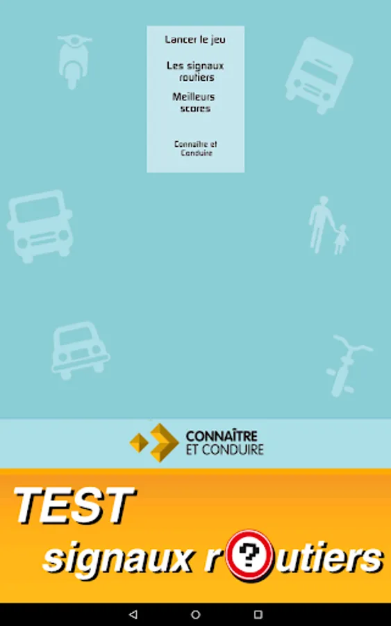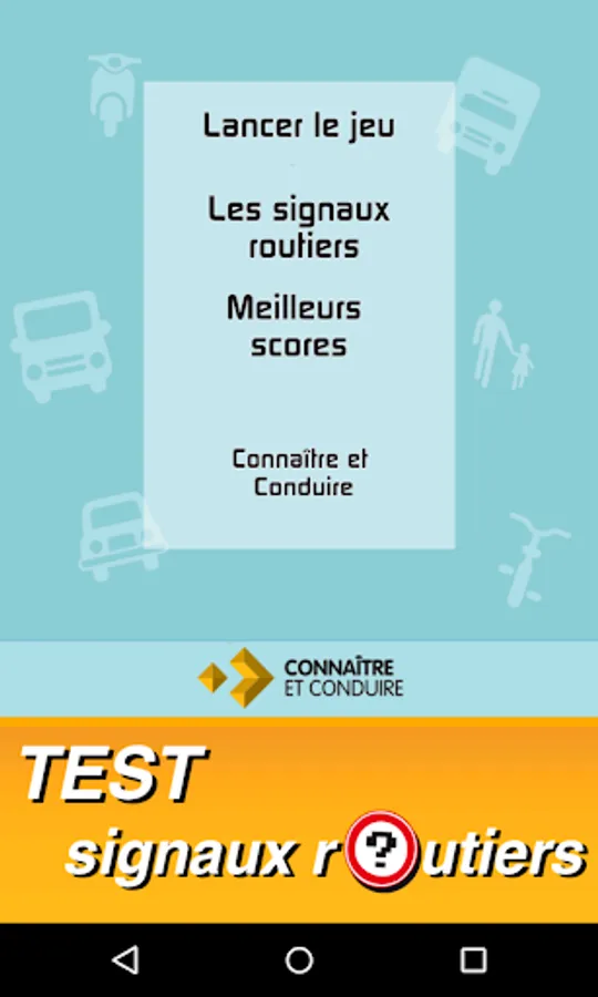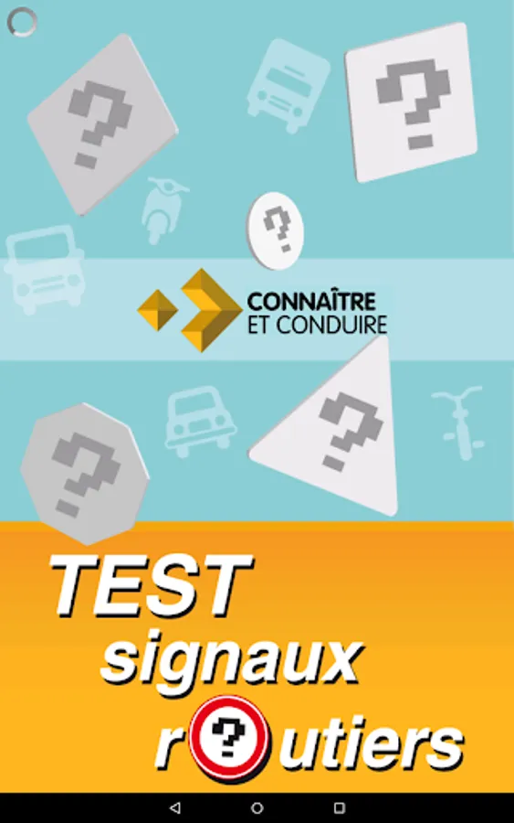 The Road Test Signal Know and Driving is a game that tests your knowledge of road signs. Answer as many questions as soon as possible. Beat the record by combining a knowledge of road signs to hyperrapides reaction times. The app remembers your 5 best results. Share your results with your friends on Facebook and Twitter.