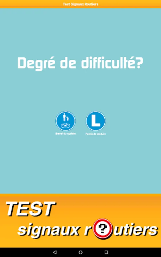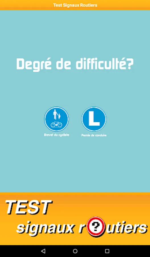 Test Signal Road offers two levels: "license" and "patent cyclist." The level "driver's license" allows to learn the legal meaning of road signs. Level "patent cyclist", which is designed for young cyclists, provides simpler definitions. Here, we focus on the actions to be taken with a certain road sign.