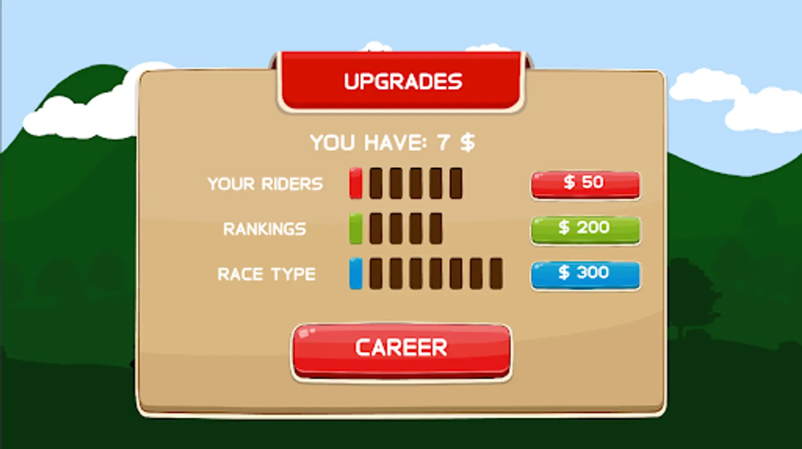 You start off with only one rider. Compete in races to start earning money. Unlock more team mates and compete in more extreme and longer races. Keep going and win the ultimate world tour!