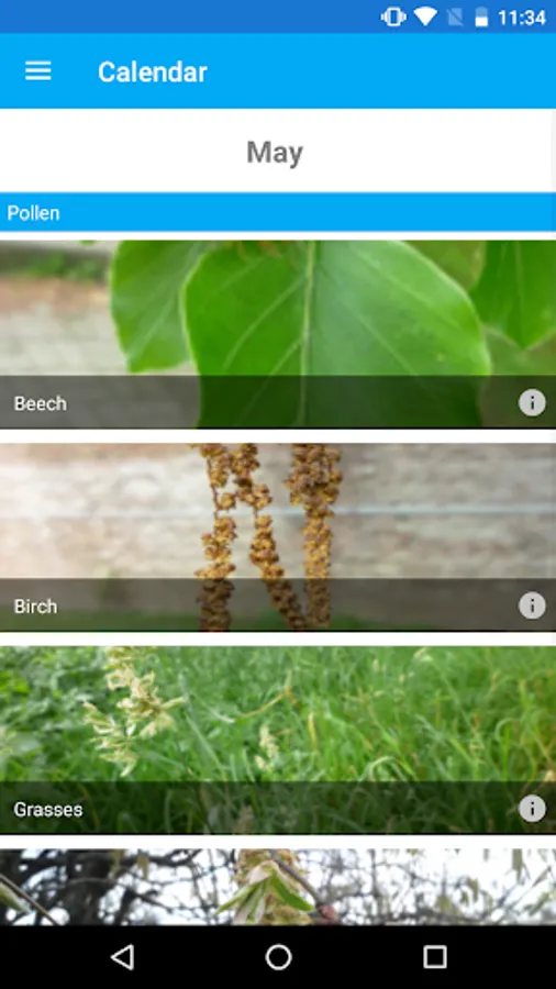 - to have an overview (digital calendar) of the critical periods that are usually observed in Belgium for pollens and fungal spores.