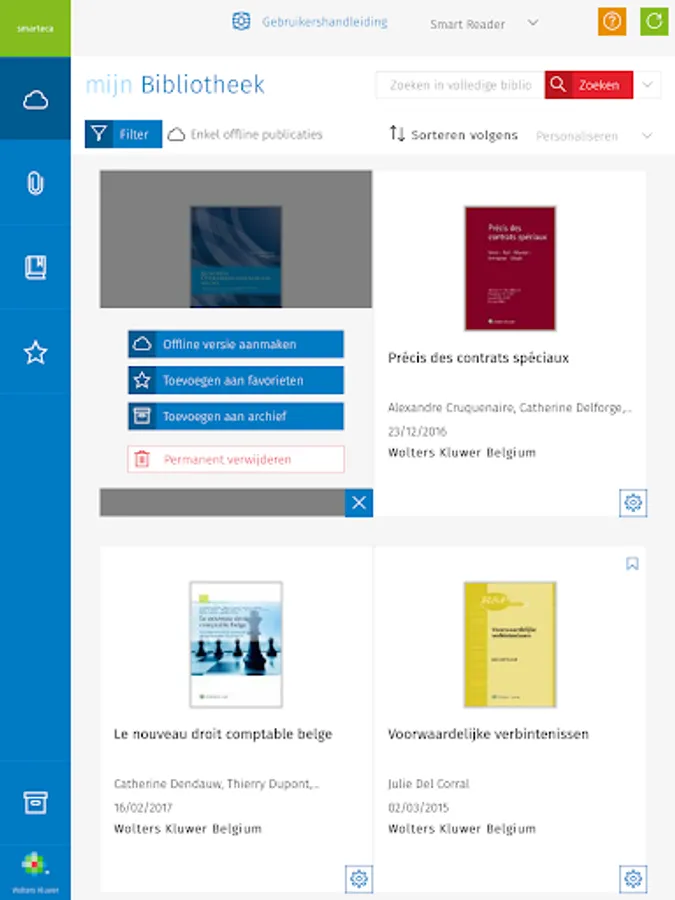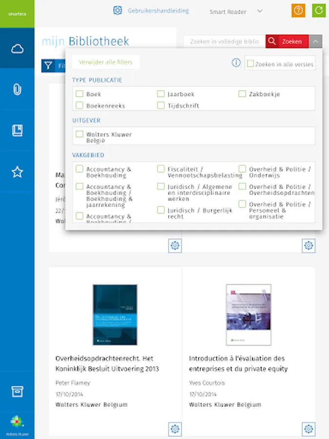 Smarteca bundles all your electronic books, magazines and personal documents purchased on shop.wolterskluwer.be in an easily searchable online library. So you have your own knowledge database always at hand.