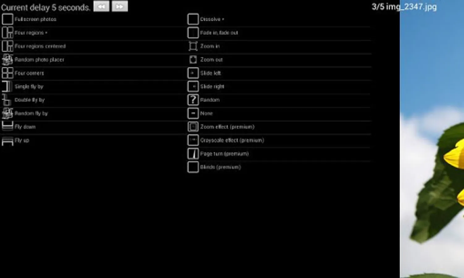 A photo display application like a digital photo frame showing a nice slideshow of all photos from the selected source.