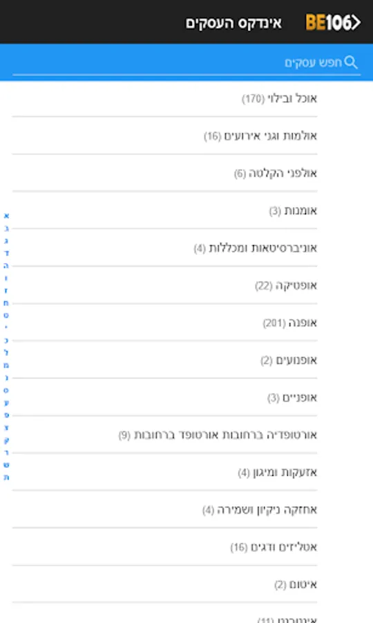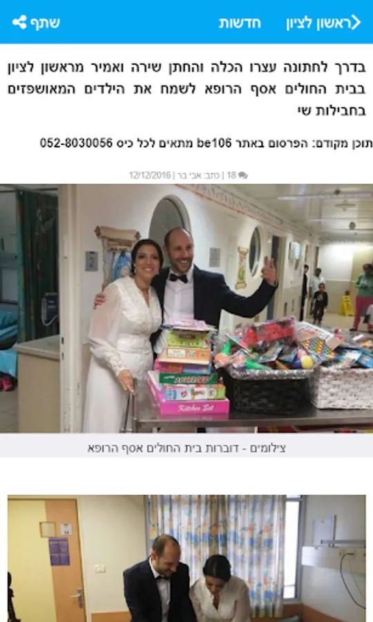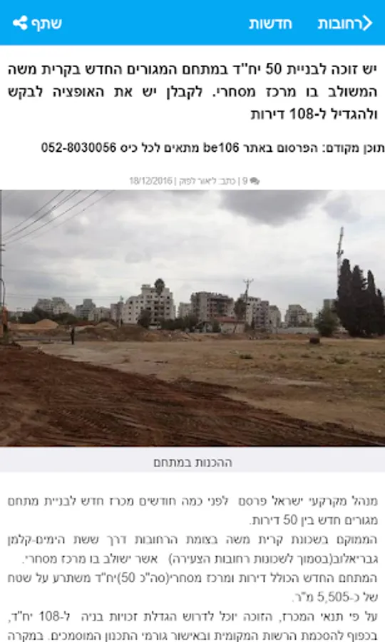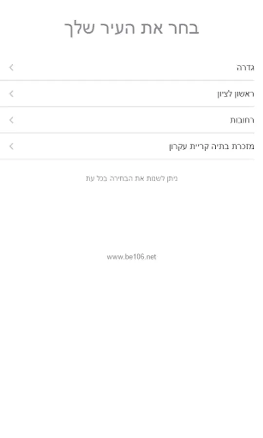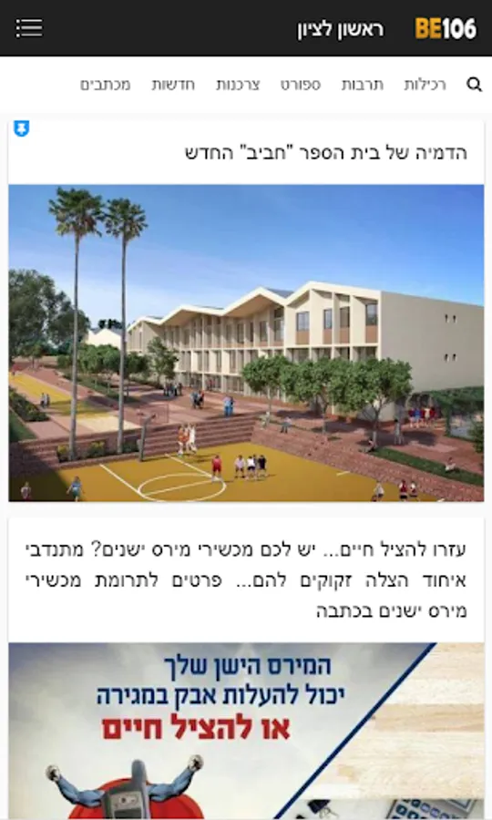 אתר BE106 הוא אתר חדשות מקומי של העיר רחובות , ראשון לציון , בת ים , יבנה , חולון , גדרה , מזכרת בתיה , מוסף הנדל"ן , קרית עקרון ומושבי הסביבה מתעדכן כל יום באתר יש מדורי חדשות, ספורט, כלכלה ועסקים, רכילות, תרבות, מאמרים, אינדקס עסקים, לוח דירות למכירה ועוד