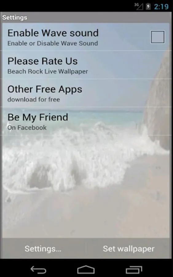 Now you can have beach always with you is the most realistic effect. The sea pounding on the rocks, so can you look at it and relax. This amazing beach live wallpaper simulates sea water that falls on the screen of your mobile.
