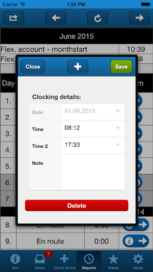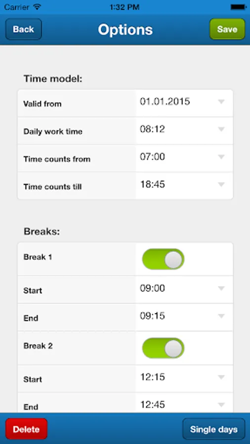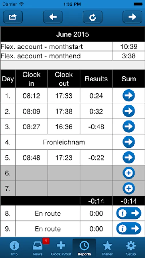 Just configure you work time model with you individual pauses und make your clock in/out every day with the App. Also enter your holidays, sick-leave and en route days.