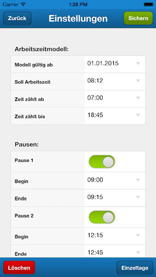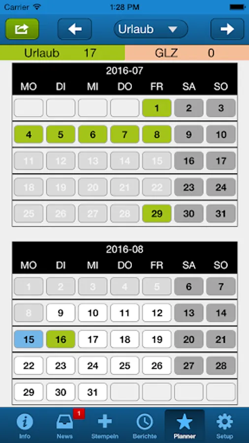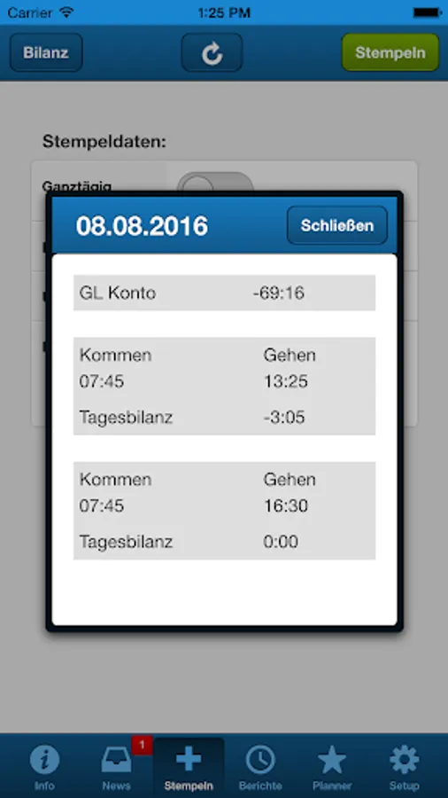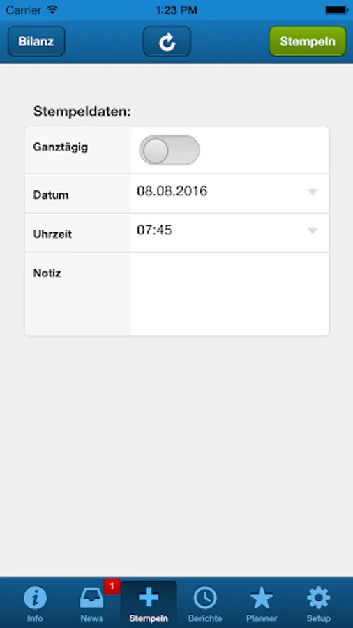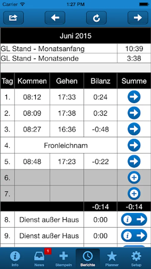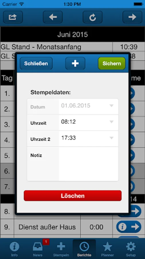 Depend on your working time model with your individual pauses and stamps every day in the app. Enter your vacations, sick leave and business trips.
