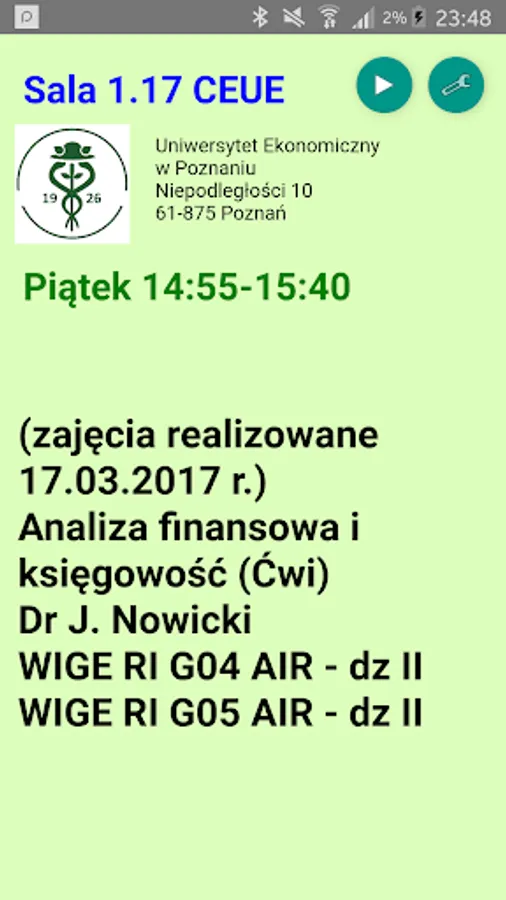 -basic schedule for university classes, for the tagged locations,