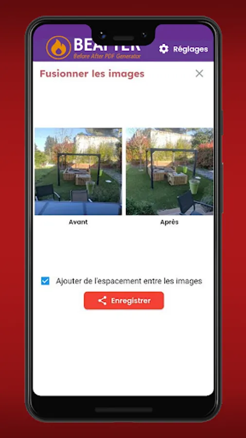 In 1 click, you can merge and share your BEFORE / AFTER photos on social networks.