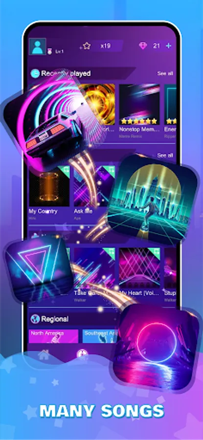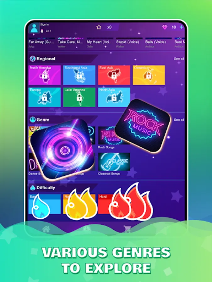 With Dream Tiles Piano, you can perform piano music by simply tapping piano tiles. With ease and fun, melody and rhythm of piano songs flow freely along your finger touch.