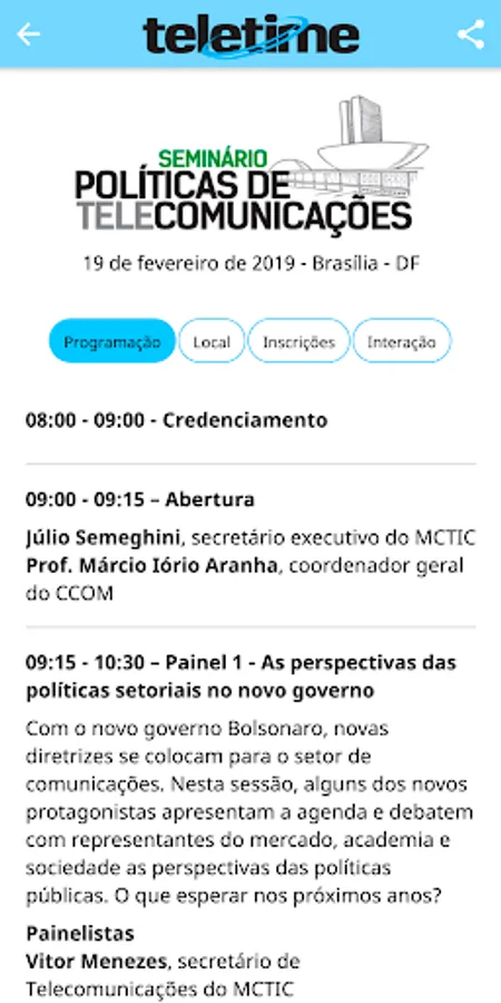 Teletime is the first online publication dedicated to the Brazilian Telecommunications market, covering broadband (fixed and mobile), telephony, satellite and pay-TV markets from the perspective of market players, focusing on sectoral strategies, public policies , regulation, technologies and marketing. The reports and analyzes are aimed at professionals working in the sector, both in the public and private sectors.