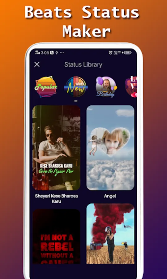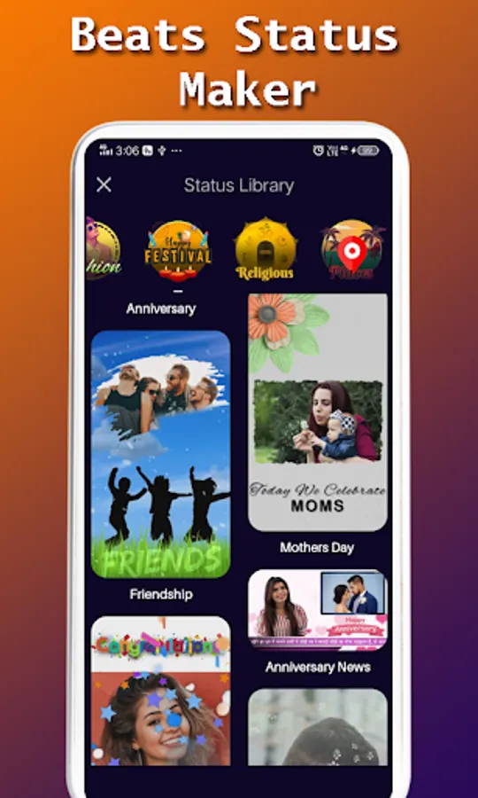 It is also called photo to video maker, in which users can choose from huge collections of video status, and can create whatsapp status, intagram story lyrical videos and can share with friends and family.