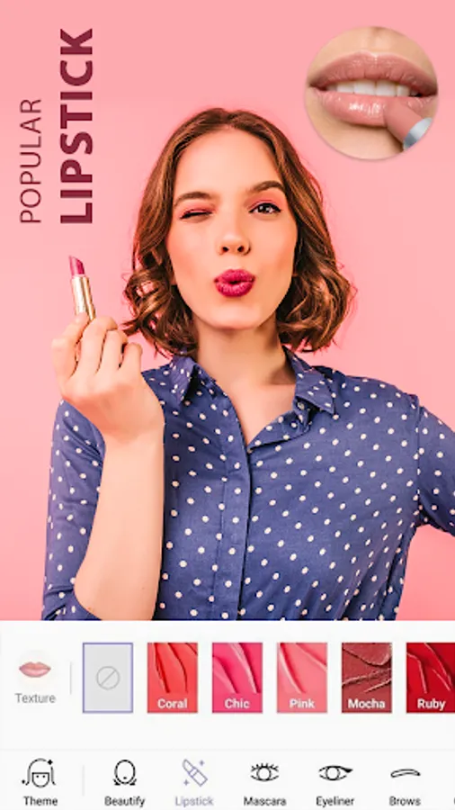 Beauty Camera - AI Camera Editor & Selfie Camera, Makeup Camera, One-tap features help you easily add auto-retouching, collages, frames, cute stickers, pretty makeup, skin/hair correction beauty effects, slimming, full virtual makeover, You can have a unique makeup style from eyelashes, and blush to hair color.