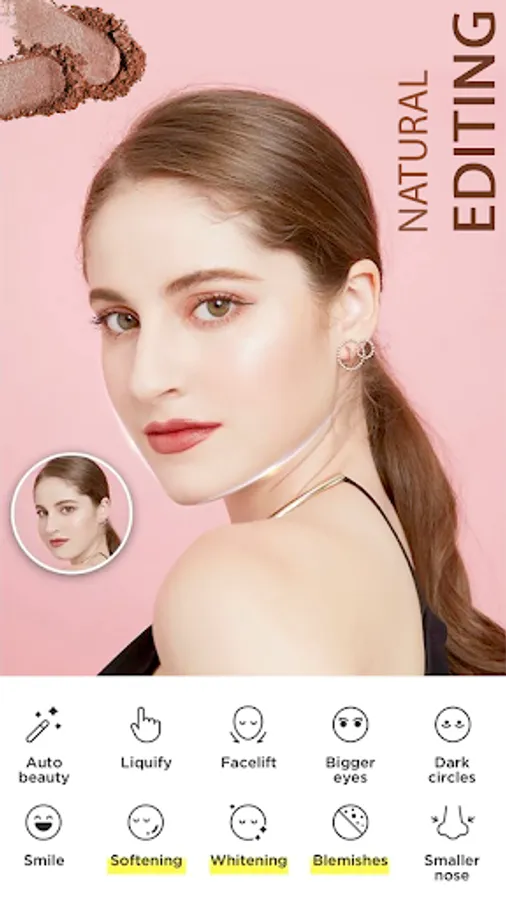 + Quick-fix that auto contours your face and retouch your skin for album pics