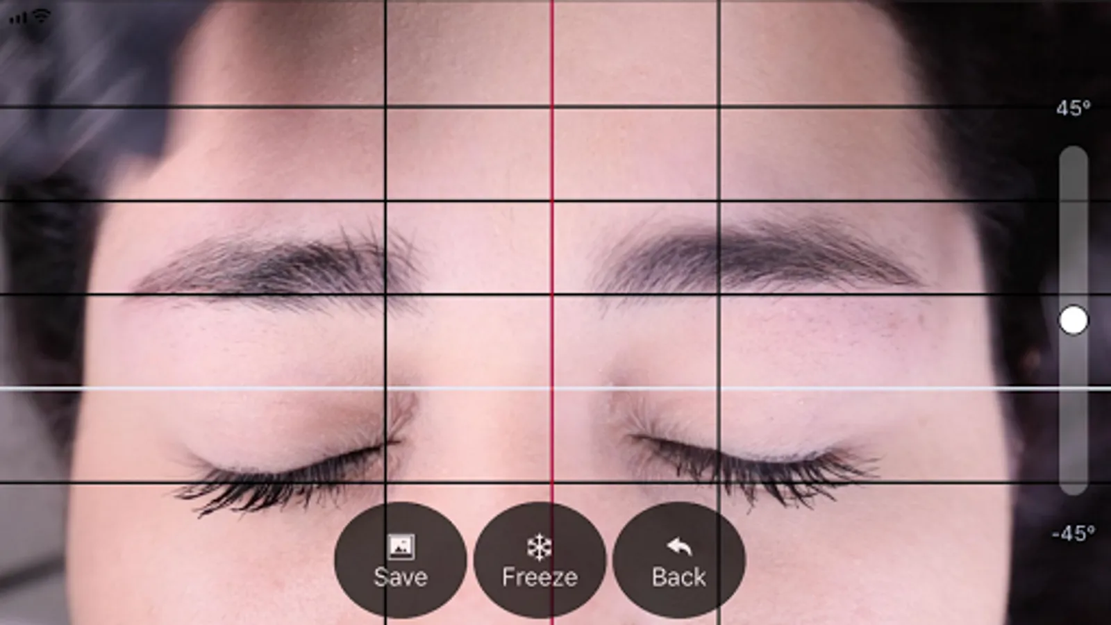 The first thing to do is to position the screen of the phone horizontally and frame the face using the two horizontal lines, positioning them on the upper arches of the eyebrows (point 2), and the central vertical line position it on the line Vertical previously plotted to the center of the Nose Bridge.