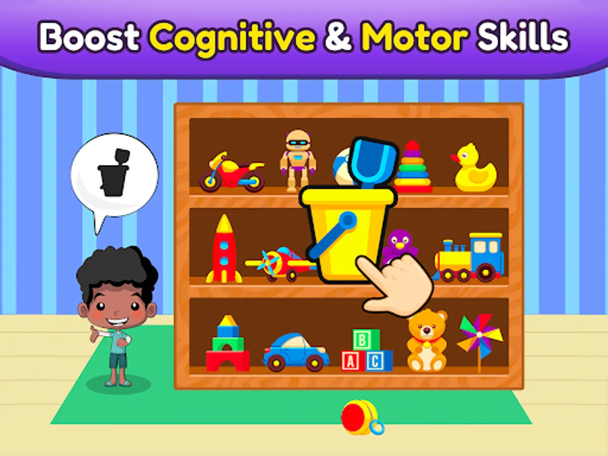 ► Identify shapes, sizes, and colors by playing toddler puzzles that let you sort objects