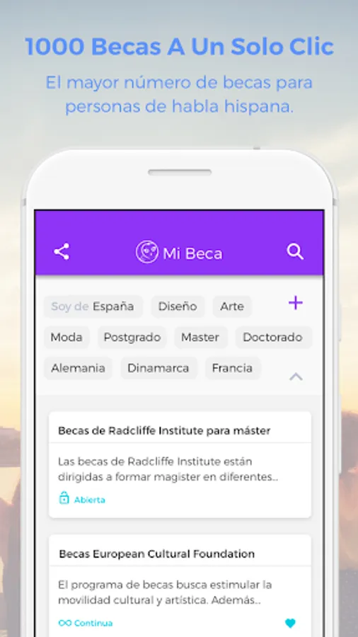 My scholarship is the first application that gathers in one place the largest number of scholarships for Spanish speakers. The aim is that just a few clicks, you have access quickly and effectively to scholarships that fit your profile manner.