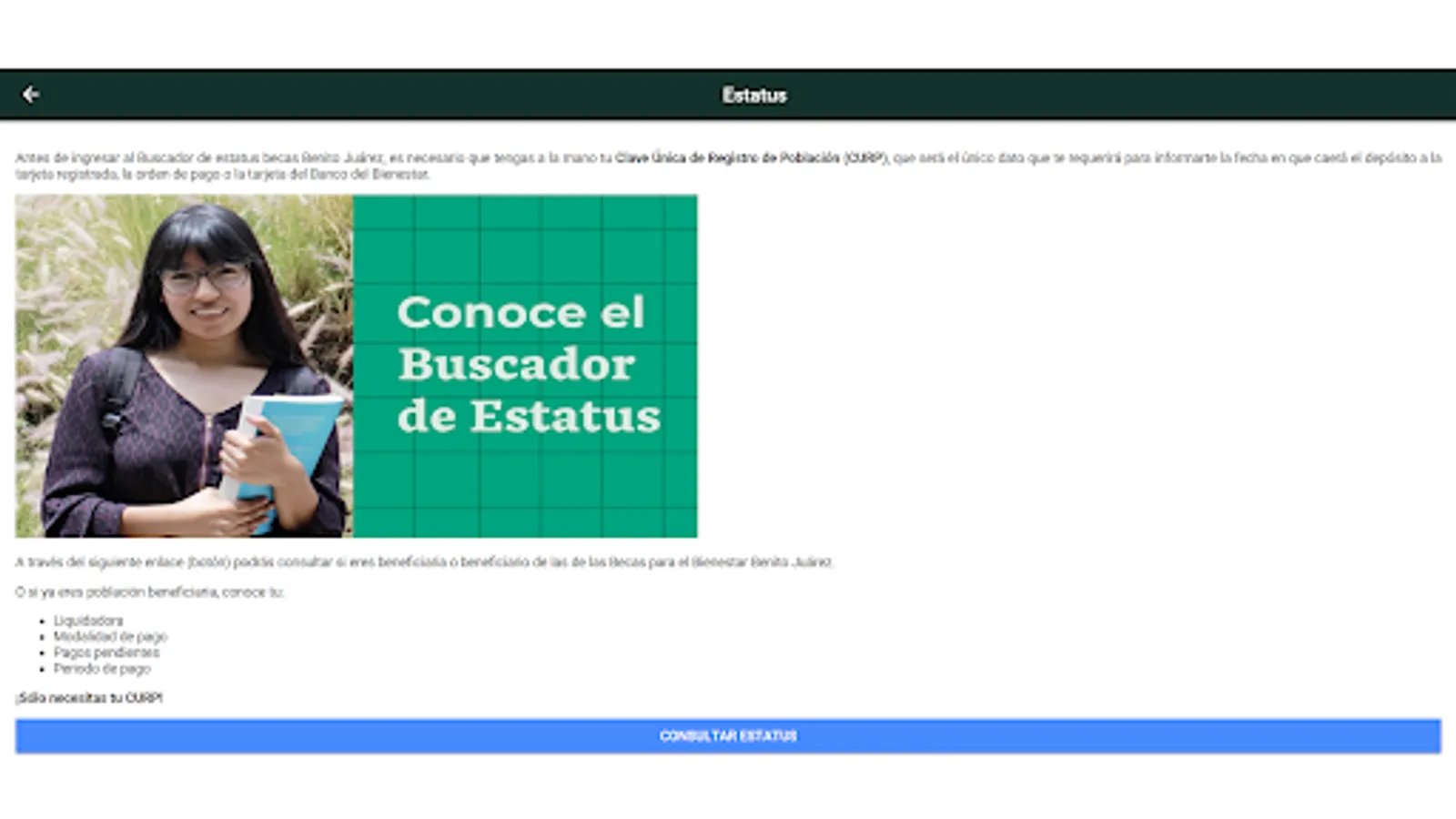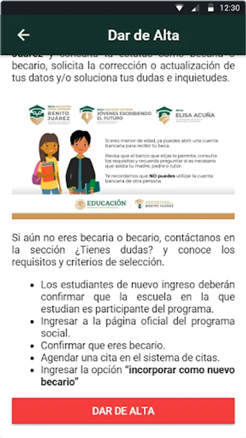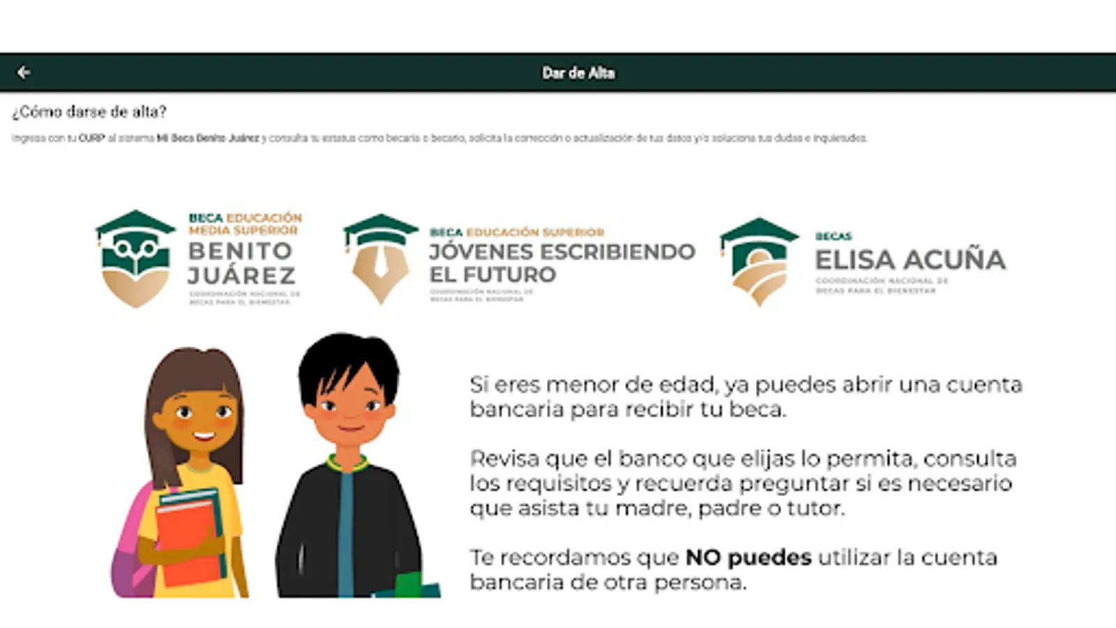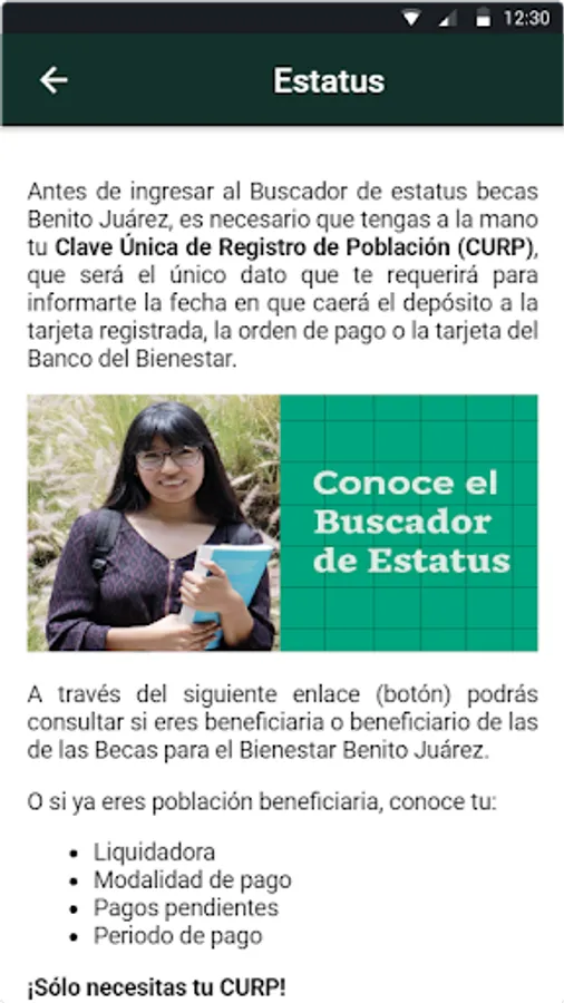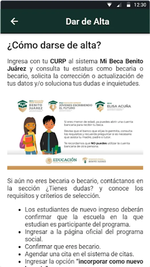 Source of Information: All the information in the application is based on what is published on the social networks of the Benito Juárez National Scholarship Coordination for Welfare (CNBBBJ) and the official government website of Mexico: https://www.gob .mx/becasbenitojuarez/