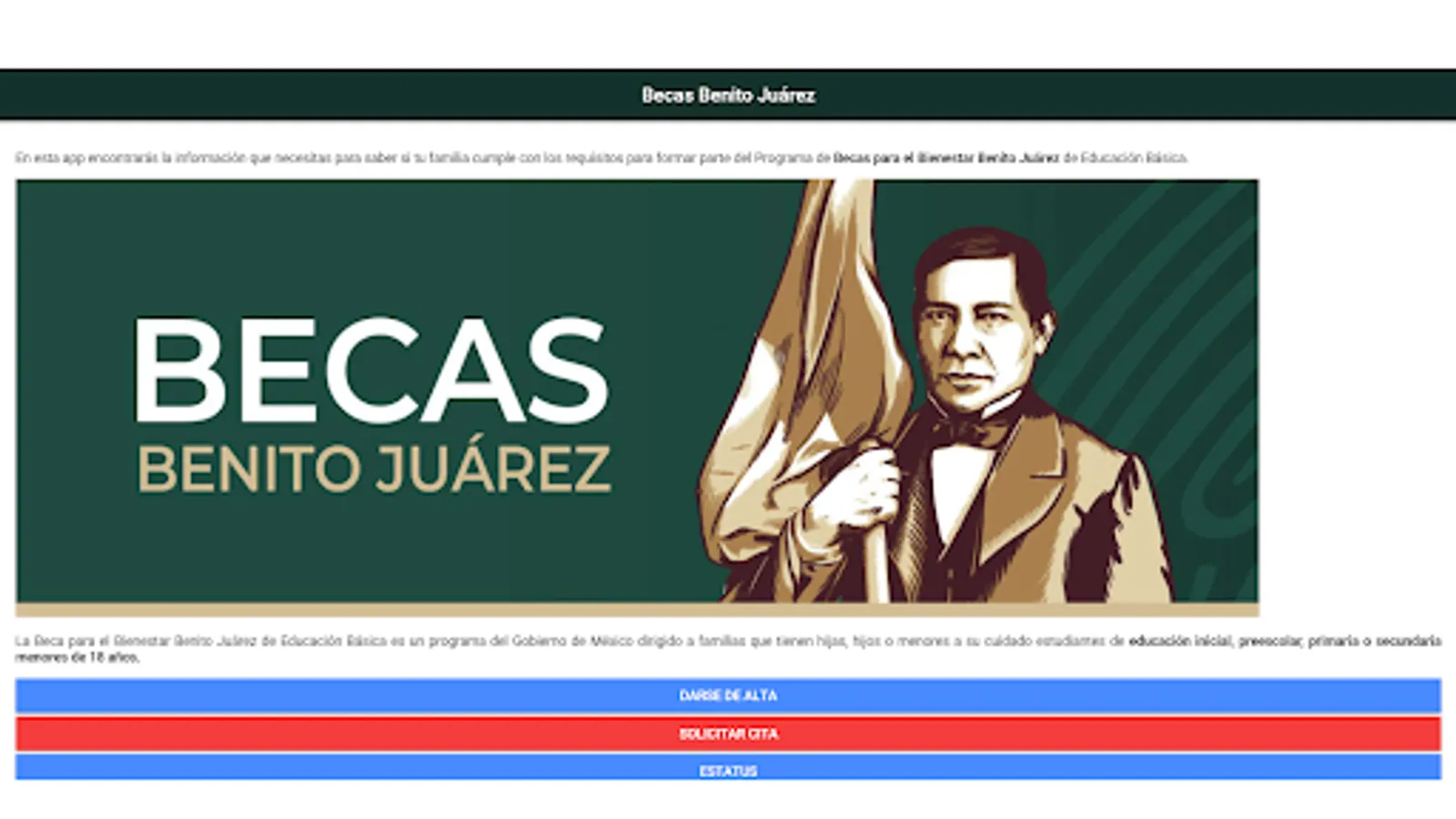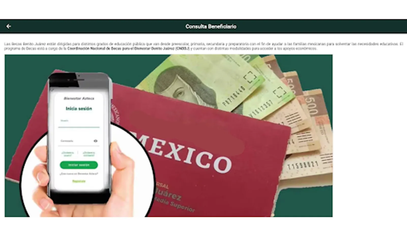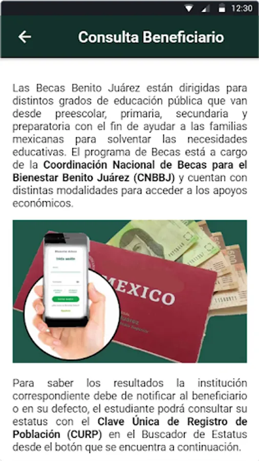 Disclaimer: This app is not an official government application or related to the government of Mexico, and has only been created for informational purposes to access social programs much easier. We do not provide access to scholarships, nor do we intervene in the selection process.