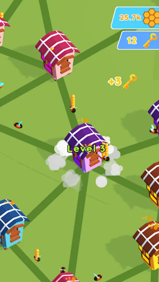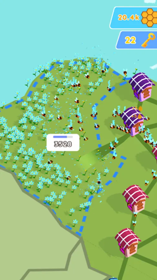 Build routes for your bees between hives. Send your bees to extract honey in the flower fields. Improve your hives to increase the power of your bees!
