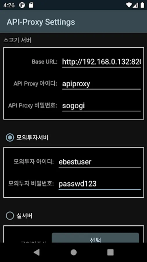 Beef Project is an installation-type web service-based stock investment helper program. Because domestic securities companies do not support REST API, etc., the web server program cannot directly link with securities companies. This app uses eBEST Investment Securities' Android API for stock trading to request and trade charts between the beef project server and the securities company server. It is a proxy app that interprets and converts the contents of orders, etc.