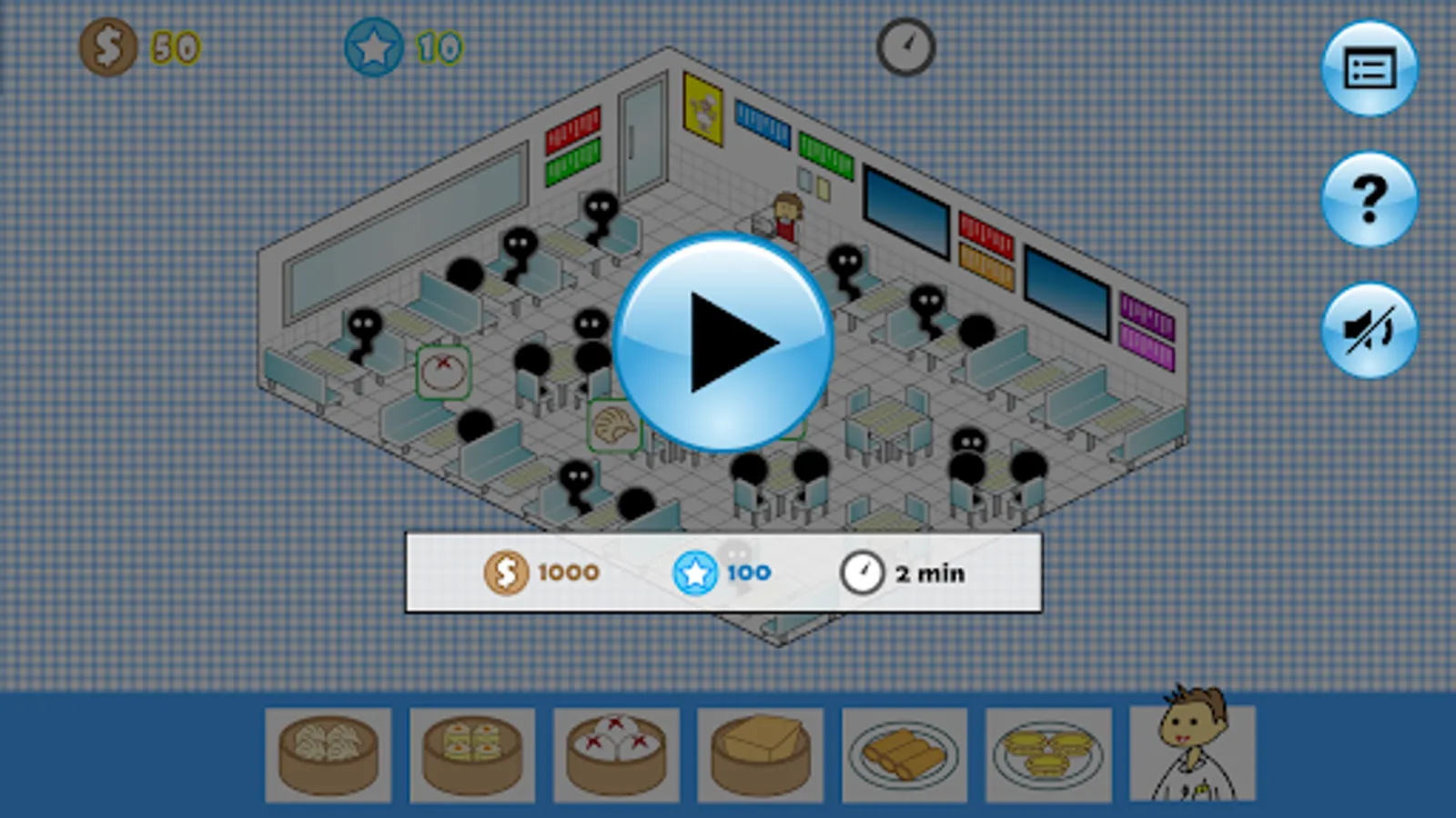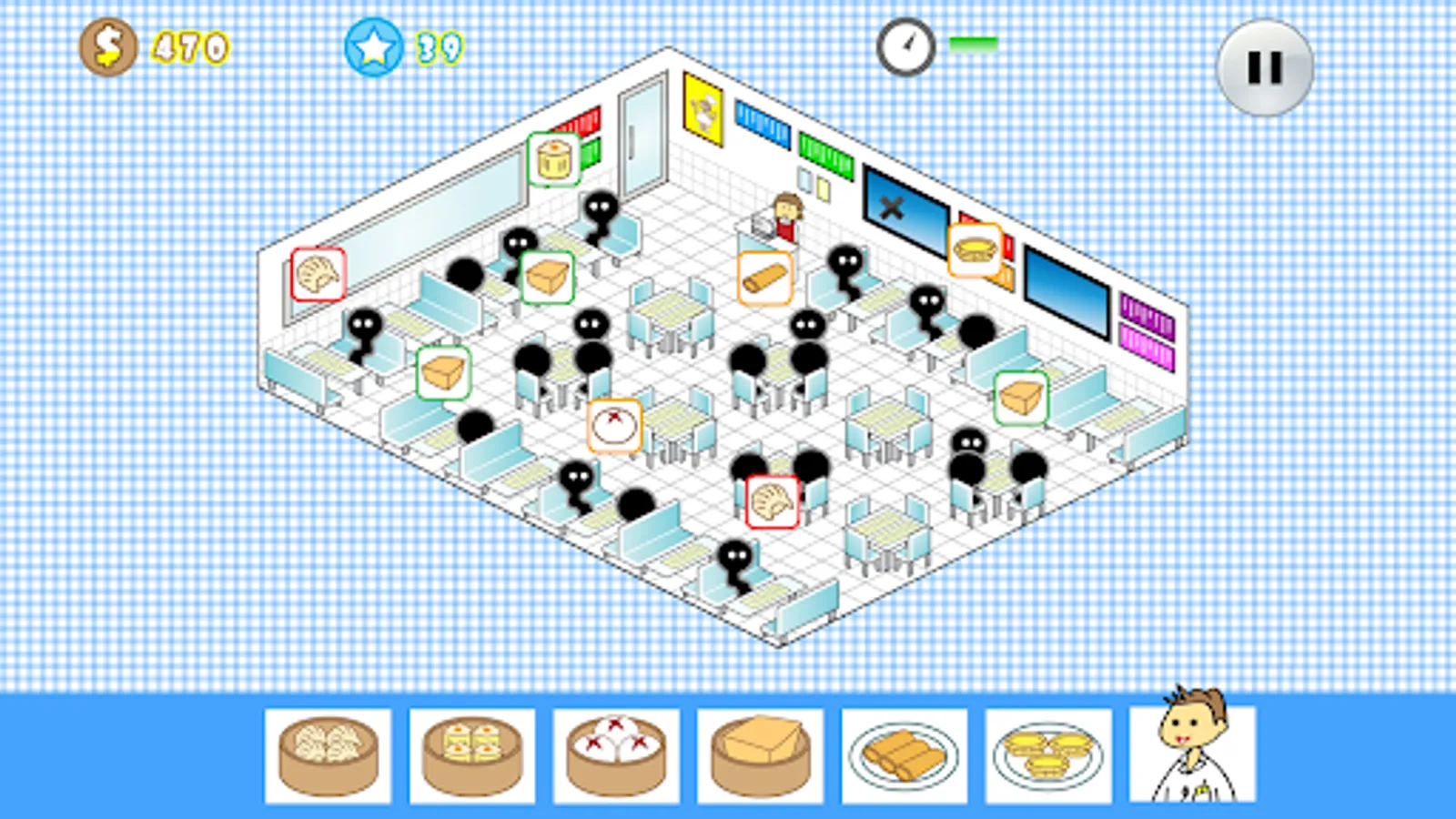 The game "Dim Sum" is based on the features of dim sum restaurant. Player plays the role of waiter. Simply tap the orders to get enough coins and stars within time limit to advance. From easy to hard, there are totally 5 levels.