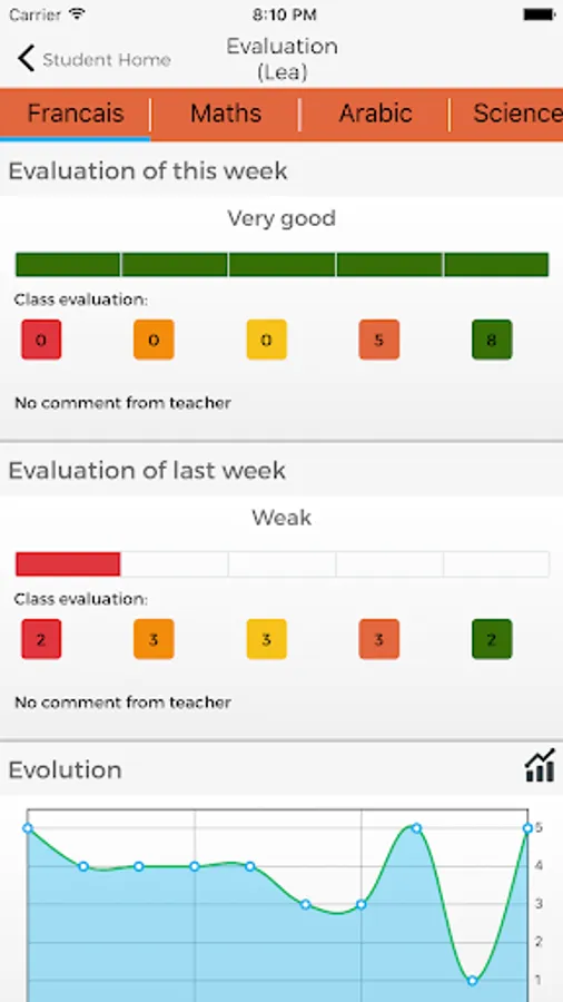 The teacher interface of the mobile application allows teachers to add daily diary, exam and weeks evaluation of their students. They can also discuss with students parents in a secure way. Additionally, teachers can send and receives messages from the school direction. They can also participates to surveys organized by the school.