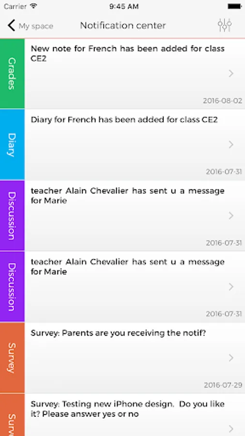 The application also features a notification center that contains all news and informations related to students and teachers. In this way, parents and teachers will missing nothing.