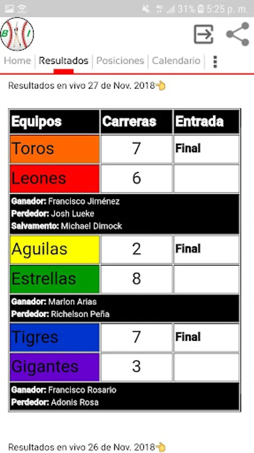 All statistics live results and game calendar of the seasons of the Dominican Winter Baseball league in a single application so you are up to date anywhere.
