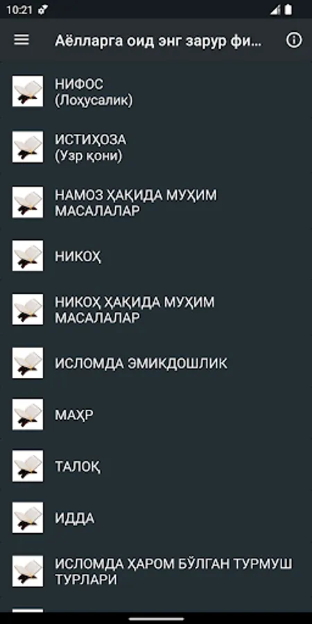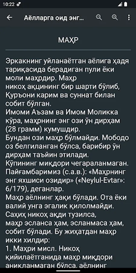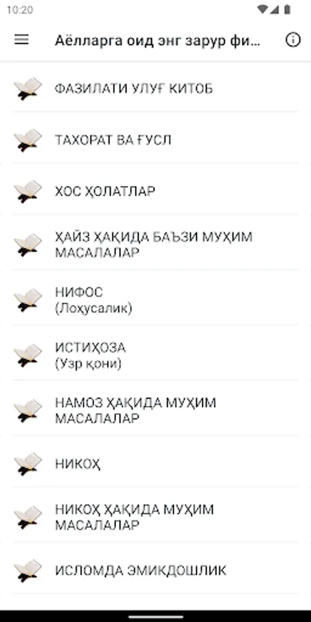 Mazkur kitobda ayollar uchun kundalik hayotda lozim bulgan muhim shar’y masalalar ishonchli manbalar asosida sodda bayon etilgan.