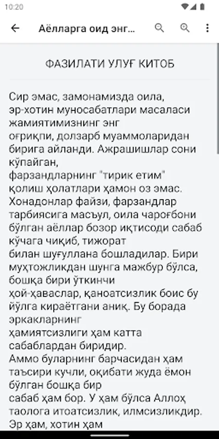 Kitobda keltirilgan malumotlar, ayni paytda erkaklar uchun ҳam uta muhim, oila tinchtotuvligi, farovonliging poidevori vazifasini ўtovchi malumotlardir.