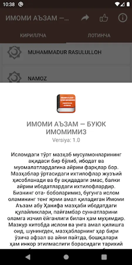 Islomdagi turt mazҳab musulmonlarining aқidasi bir bўlib, ibodat va muomalatlardagina airim farular bor. Mazablar ўrtasidagi ichthyloflar jouzius обisoblanadi wa bu aқidadagi emas, beams airim ibodatlardagi ichthyloflardir. The business of otobobolarimiz, the Bugung Islom Olaming tenge yarmi алiladigan Imomi Azam abu Ҳanifa mazabi ibodatdagi қulayliklari, payambamb sunnatlarini olamga learned the euiganligi bilan ҳam muimidir. Mazkur kitobda islom wa unga amal қilishga oid, shuningdek, mazablarning ҳar biri ичаzicha afzal wa aini payta, boshқalari ҳam inc. Ethyl masligi borasidagi tarikh manbalalagi muloҳazalar etobgoni ти tariонti.