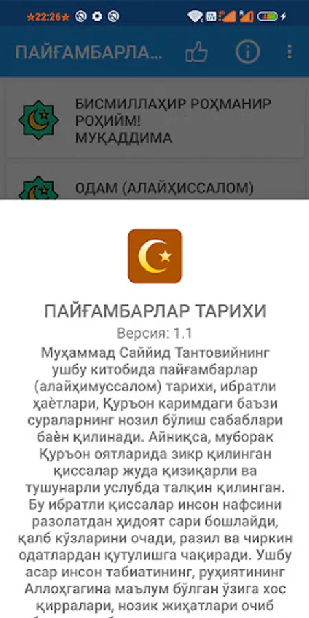 Муҳаммад Саййид Тантовийнинг ушбу китобида пайғамбарлар (алайҳимуссалом) тарихи, ибратли ҳаѐтлари, Қуръон каримдаги баъзи сураларнинг нозил бўлиш сабаблари баѐн қилинади. Айниқса, муборак Қуръон оятларида зикр қилинган қиссалар жуда қизиқарли ва тушунарли услубда талқин қилинган. Бу ибратли қиссалар инсон нафсини разолатдан ҳидоят сари бошлайди, қалб кўзларини очади,