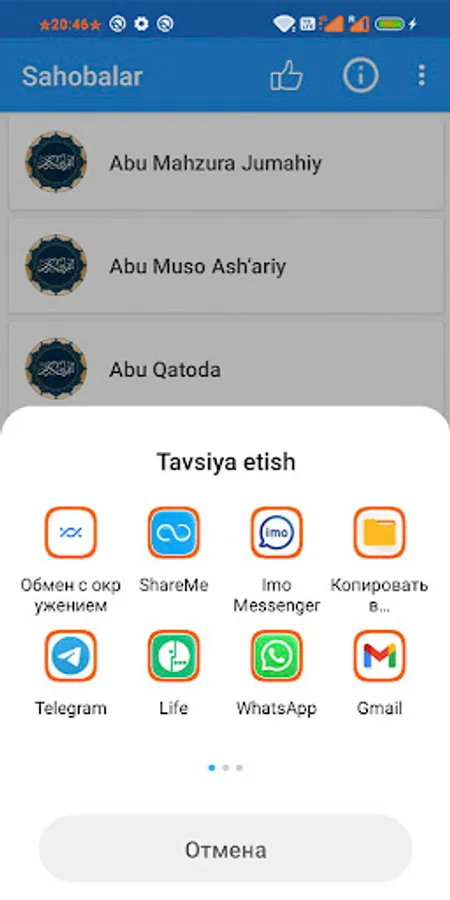 Islomiyatda Sahobalar Islom dini payg`ambari Muhammadning din jihatdan yo`ldoshlari.Payg’ambarimiz Muhammad alayhissalom bilan birga mo’min-musulmonlikda yashagan va mo’min-musulmonlikda vafot qilgan kishilardir. Har qaysilarini biz do’st tutmog’imiz lozim. Ularning eng afzallari hazrati Abu Bakr Siddiq , hazrati Umar ibn Xattob, hazrati Usmon ibn Affon, hazrati Ali Murtazo roziallohu anhumlar. Ushbu to’rt sahoba muhtaramu mukarram choryorlardir. Jamiki musulmonlar ushbu choryorlarning har qaysilarini do’st tutmog’i lozim.