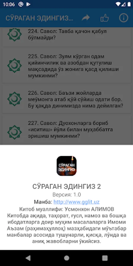 Kitobda aida, taorat, Kusl, namoz wa bosh ваa ibodatlarga doir muim masalalarga Imomi Azam (raҳimaҳulloҳ) masҳabidagi mўtabar manbalar asosida tushunarli, қisқa, lnda wa aniқkavislarni.