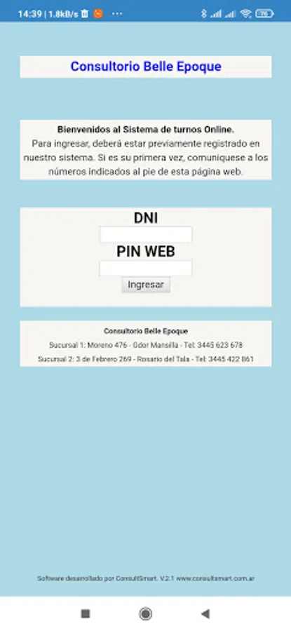 Branch 1: Moreno 476 - Gdor Mansilla - Tel: 3445 623 678