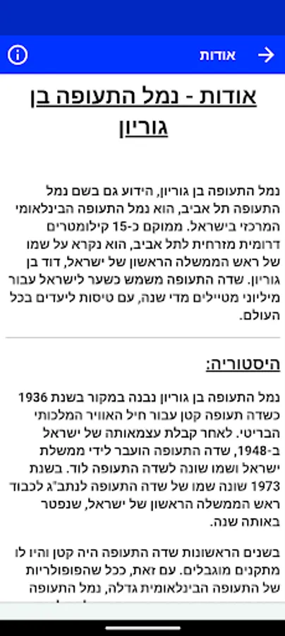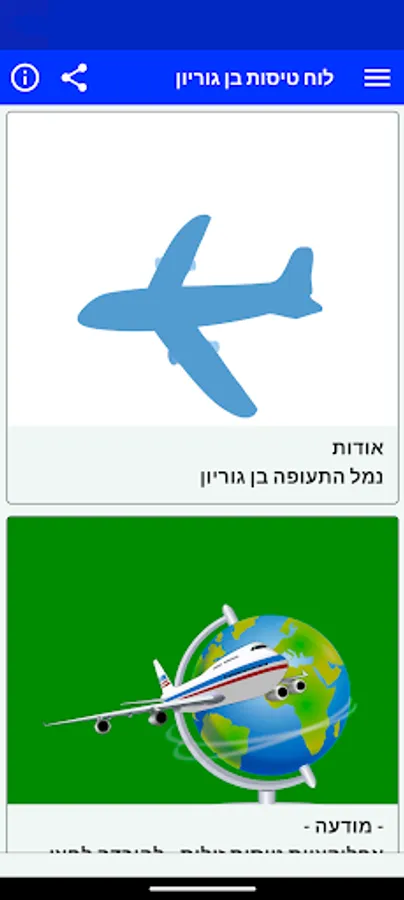 The "Ben Gurion Flight Schedule" application shows in real time all the departures and landings of planes at Ben Gurion Airport.