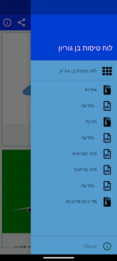 The application allows you to easily receive a real-time update and in a display adapted to smartphone/tablet devices of all aircraft takeoffs and landings at Ben Gurion Airport in Israel, as well as information on the number of available parking spaces in the parking lots of NTB.