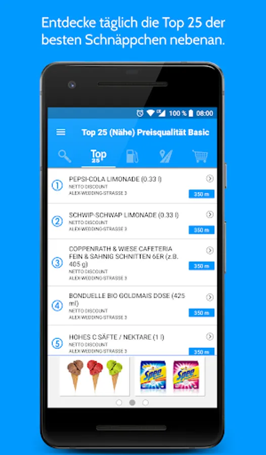 In the simplest way, the app takes the hassle out of doing your own price comparisons. Find pinpoint savings opportunities within a radius of 50 meters!