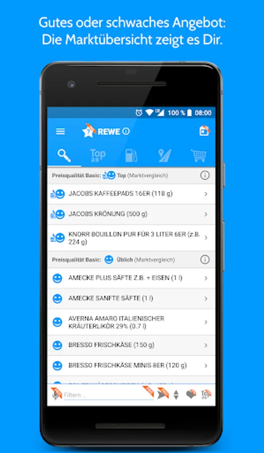 The app filters out all pseudo-bargains from brochures. Many offers are not bargains. Nevertheless, the impression is given that there are some. What is too expensive is thrown out at SPARPIONIER.