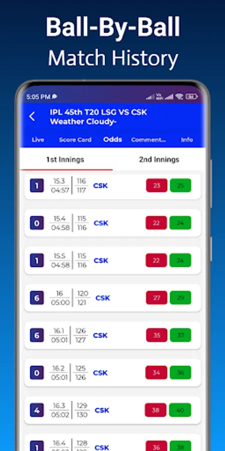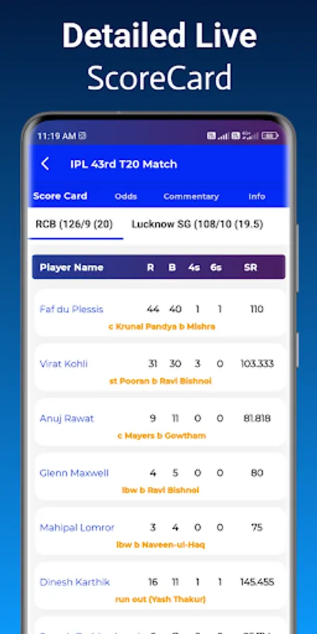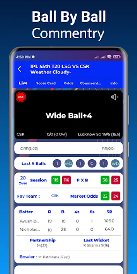 Our app provides a detailed scorecard for every match, including stats and graphs for each player. You can view the scorecard for any past or ongoing match and get a detailed overview of the game.