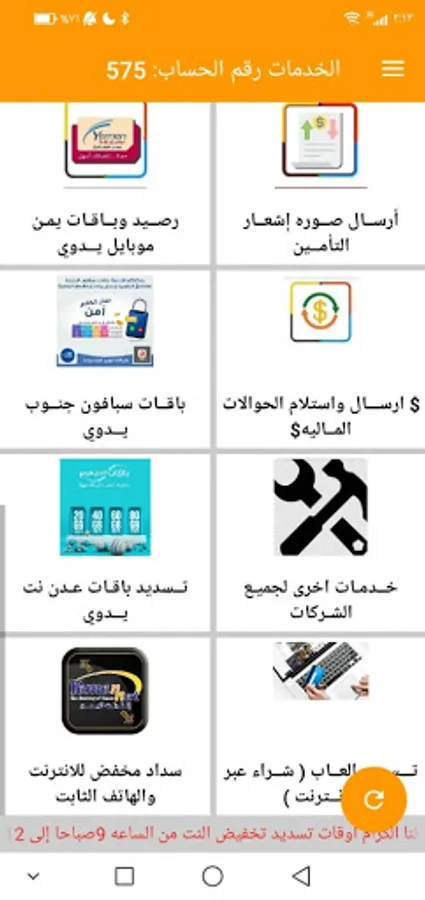 1_ Payment of all telecommunications companies to (Yemen Mobile credit and packages - Spafon credit and packages _ MTN credit and packages _ Wi _ and the fourth generation service Aden Net packages)...with the possibility of checking the advance for Yemen Mobile numbers for free.