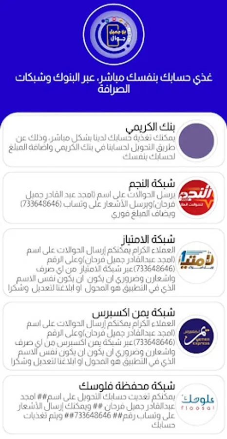 Bin Jameel Jawal is an electronic payment and instant charging application. It supports the activation of all types of packages for all different companies.