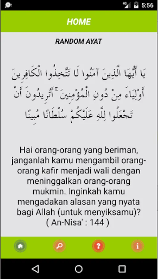 The app is a melting paragraph A-Quran based on the keywords in the content by the user, the search is done on the translation of verses of the Koran. Insha Allah can help in the search for a verse about a particular topic.