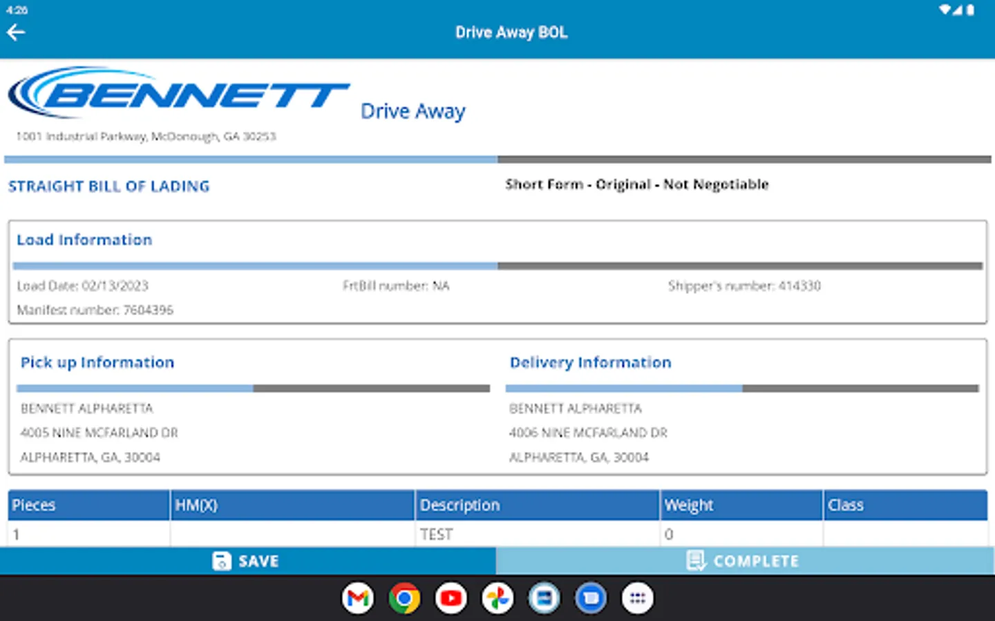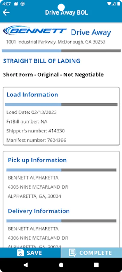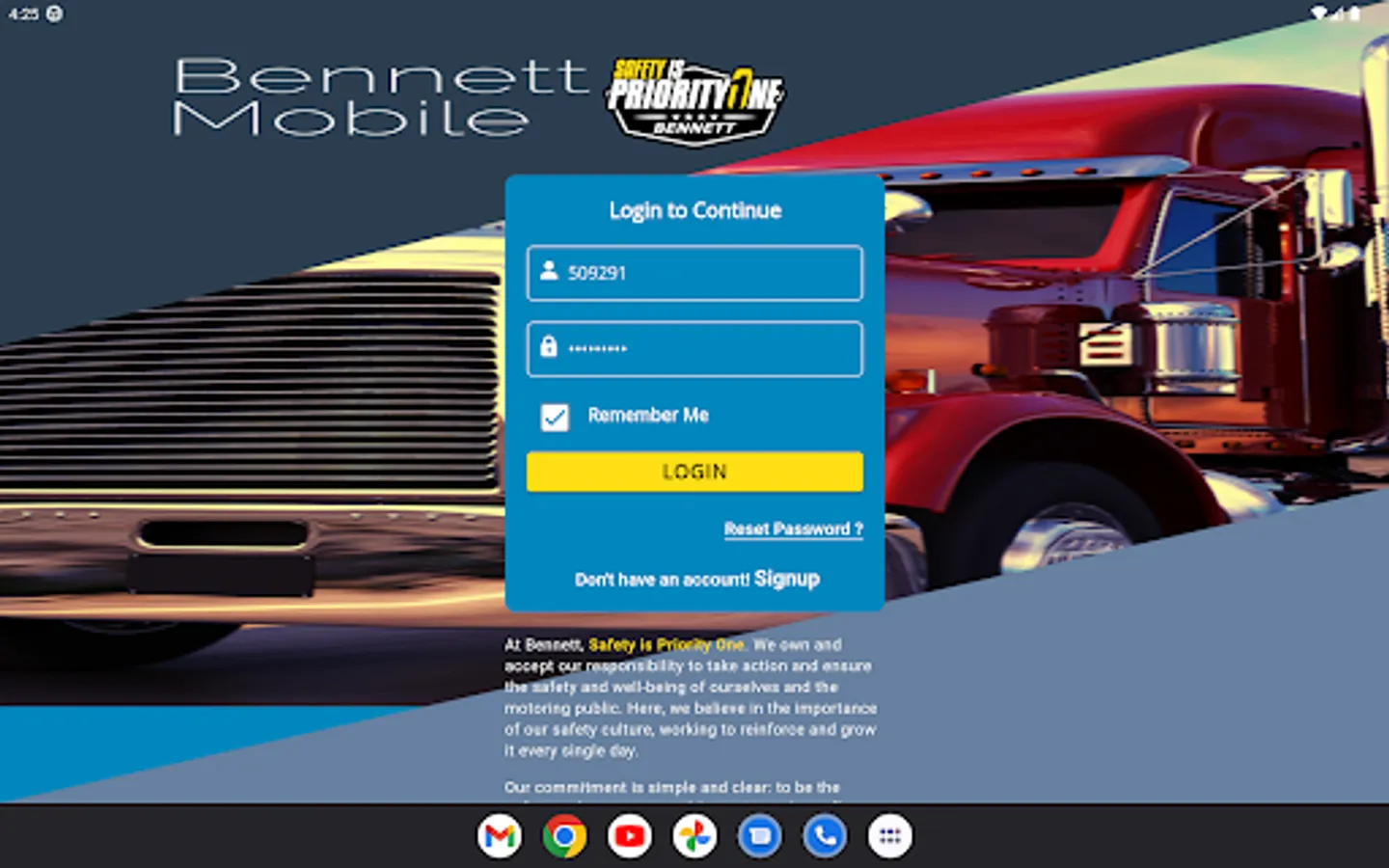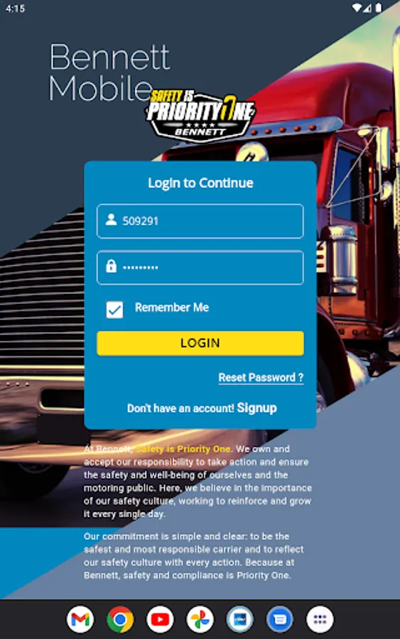 This mobile app provides mobile functionalities to Bennett drivers