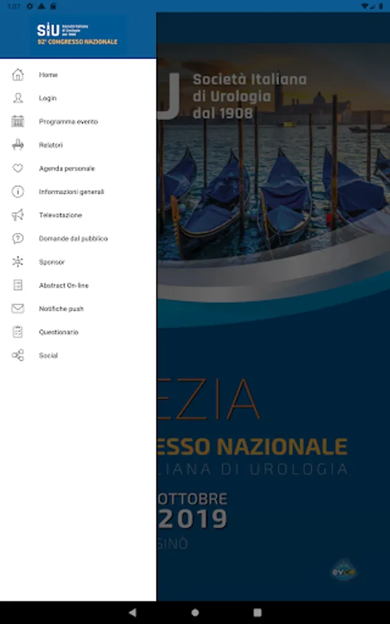 This APP will allow you to navigate within the next SIU National Congress, which will be held in Venice Lido from 12 to 15 October 2019.