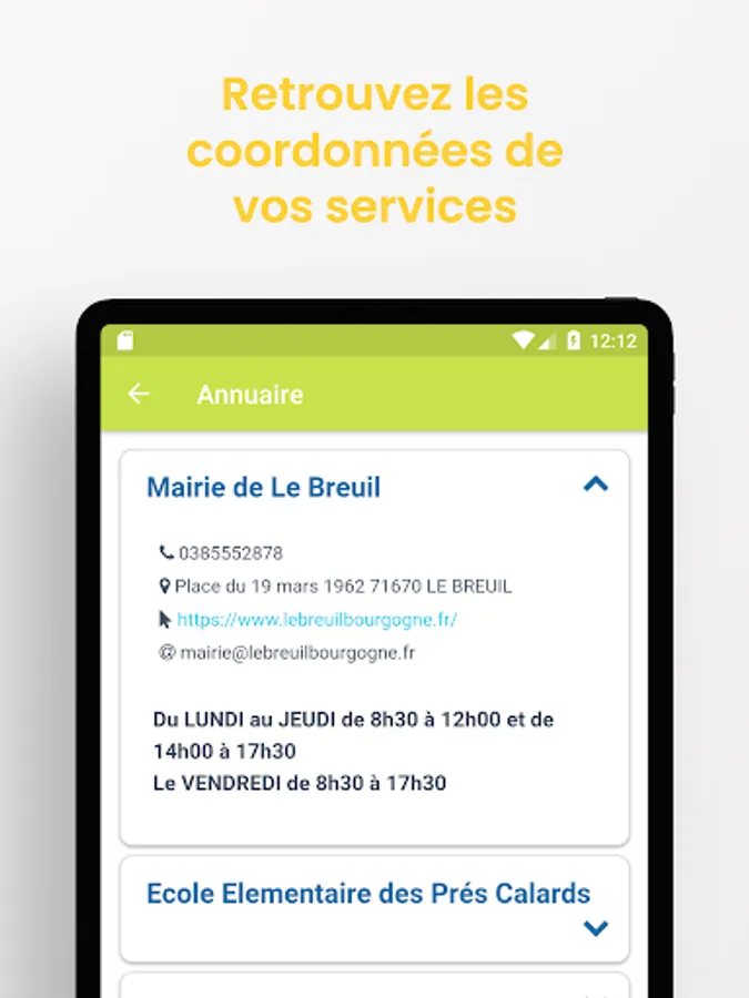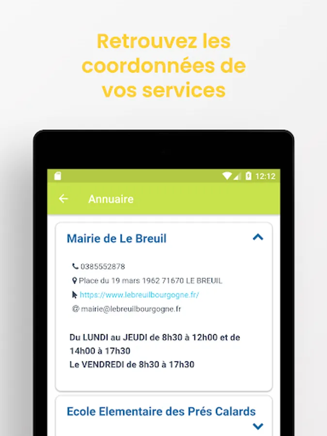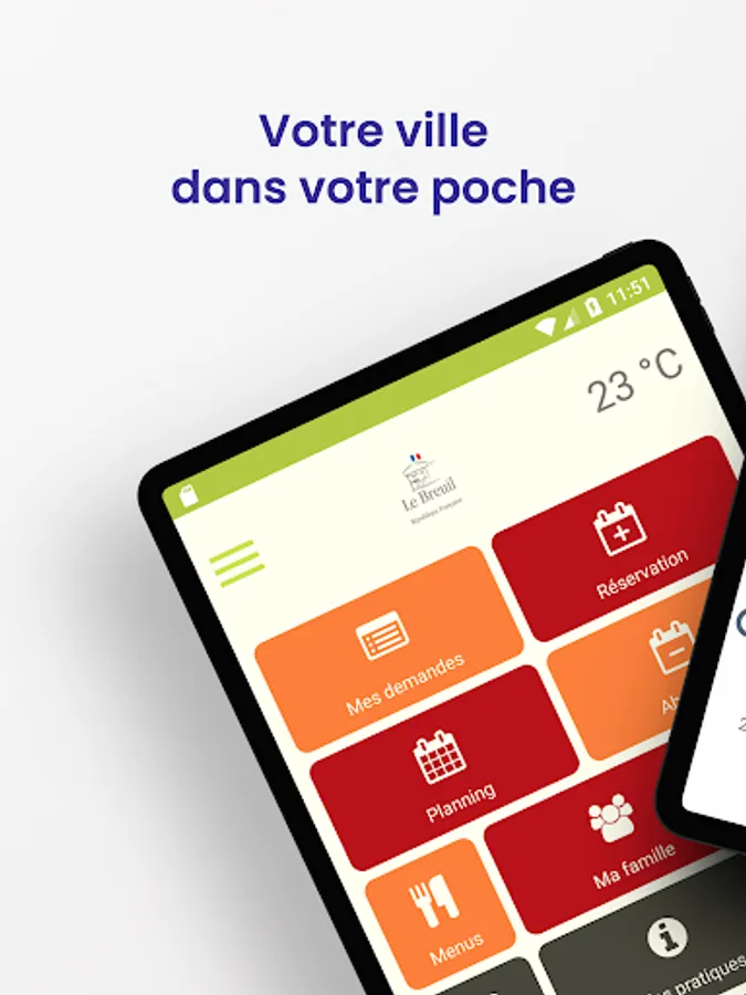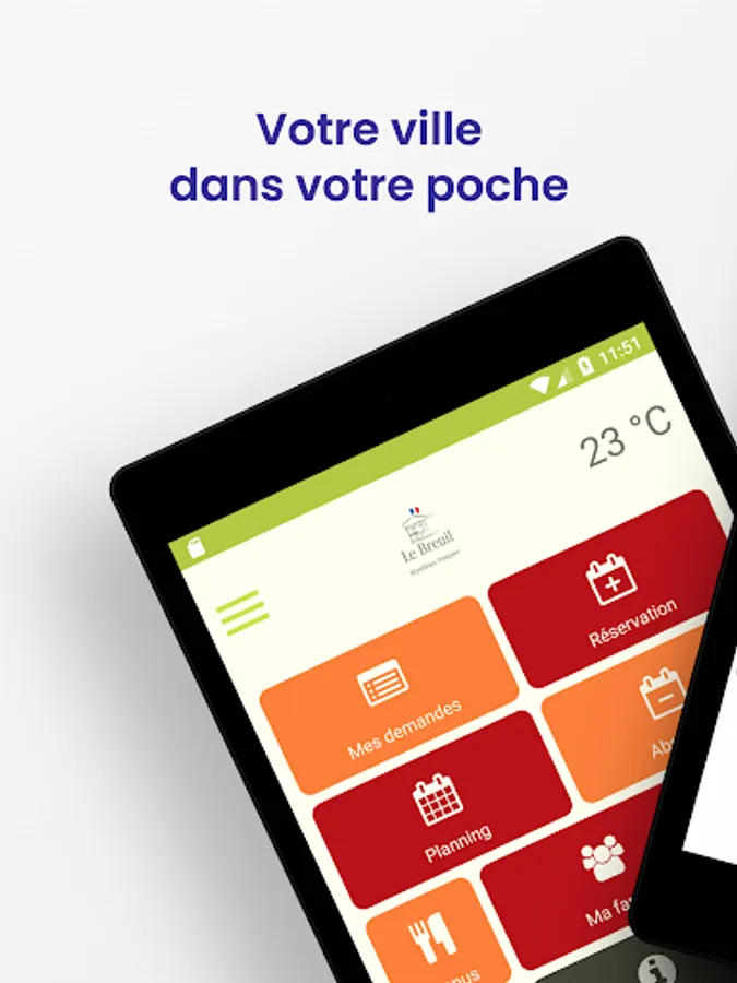 Application of the municipality of Breuil en Saône et Loire (71) which allows the management of extracurricular and extracurricular activities of your children by accessing the functions of the family portal on their smartphone; you will be able to view the schedule, make and track reservation and absence requests, access your family's file, view your bills, access school canteen menus and receive notifications.