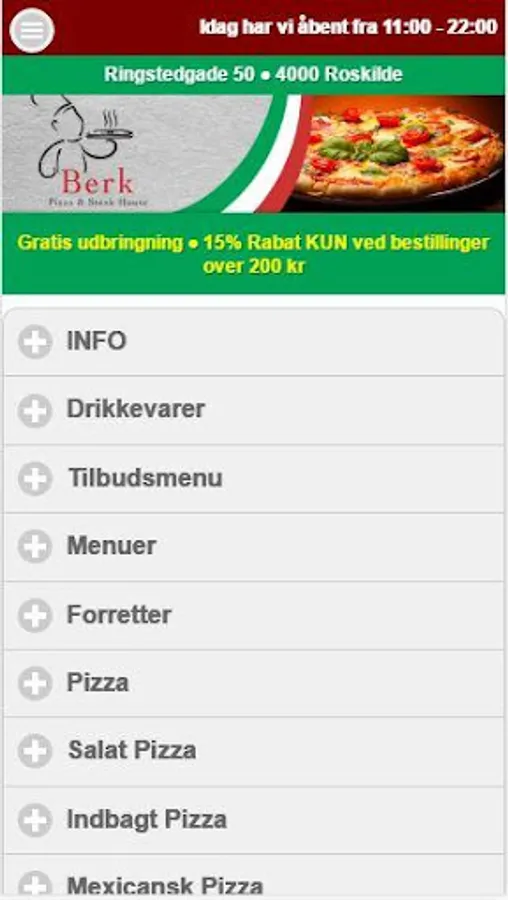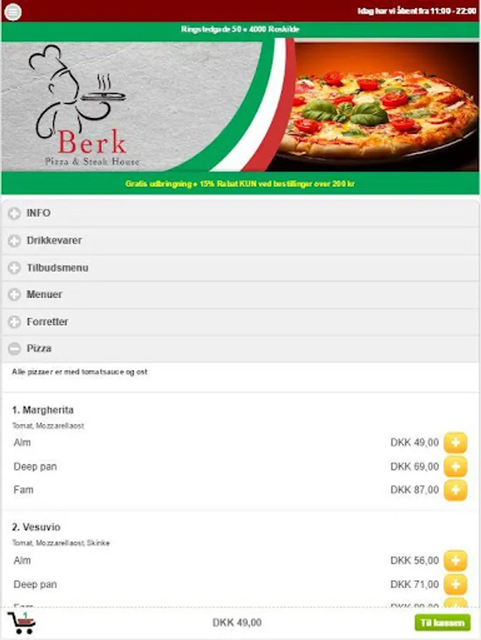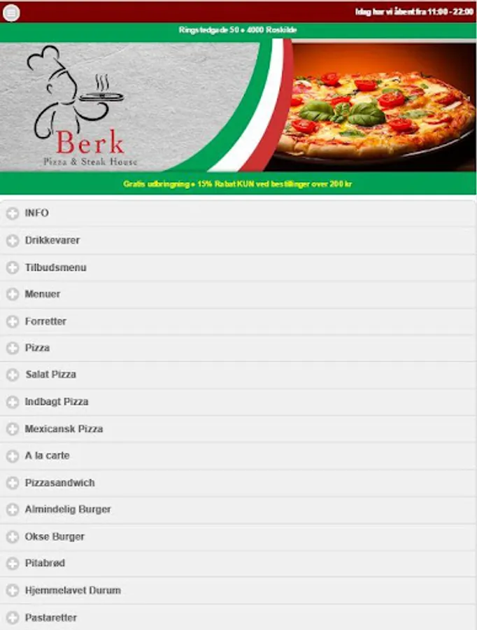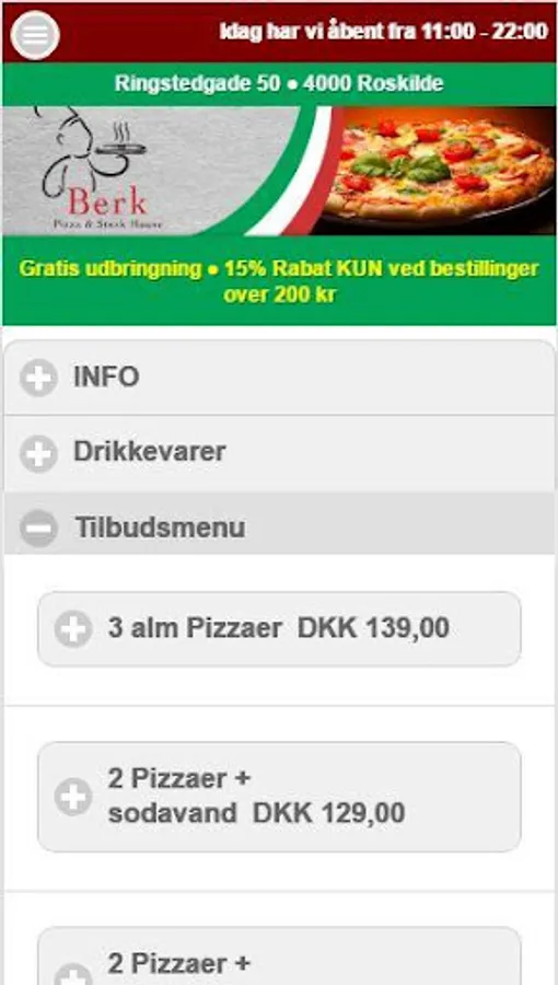 With Berk Pizza & Steak House's web app, you can now order food directly from your phone. Berk Pizza in collaboration with Meal4U.dk got their own app for Food orders.